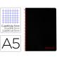 Cuaderno espiral LIDERPAPEL A5 micro wonder tapa plastico 120h 90g cuadro 5mm 5 bandas 6 taladros color negro