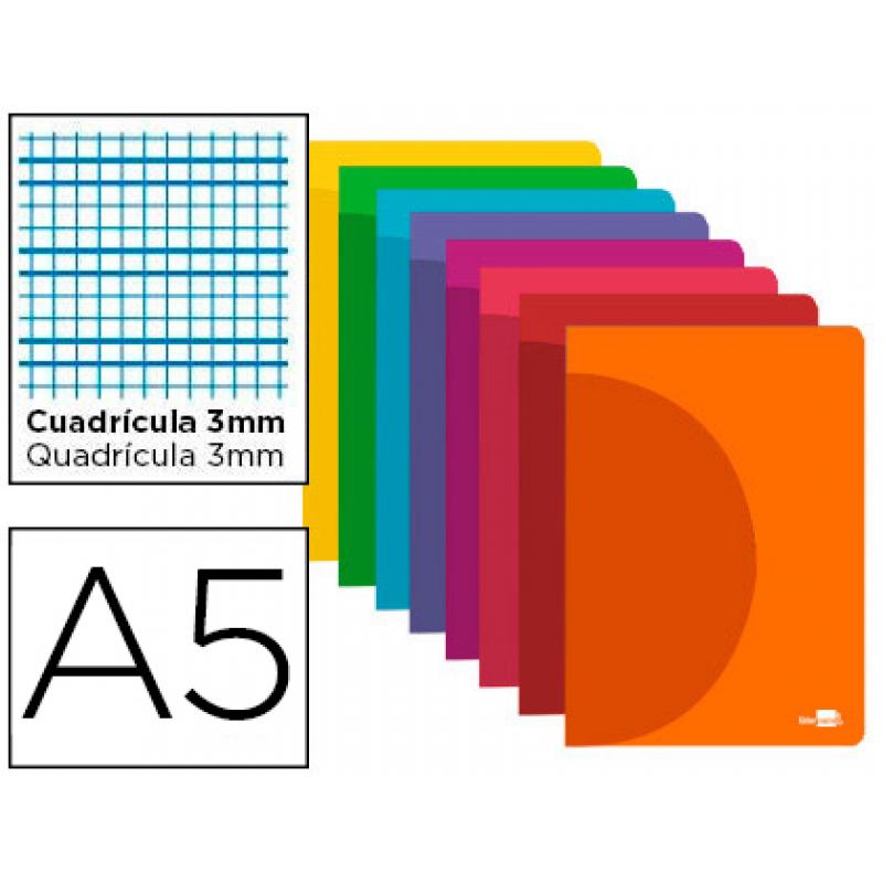 Libreta LIDERPAPEL 360 tapa de plastico A5 48 hojas 90g/m2 cuadro 3 mm con margen colores surtidos