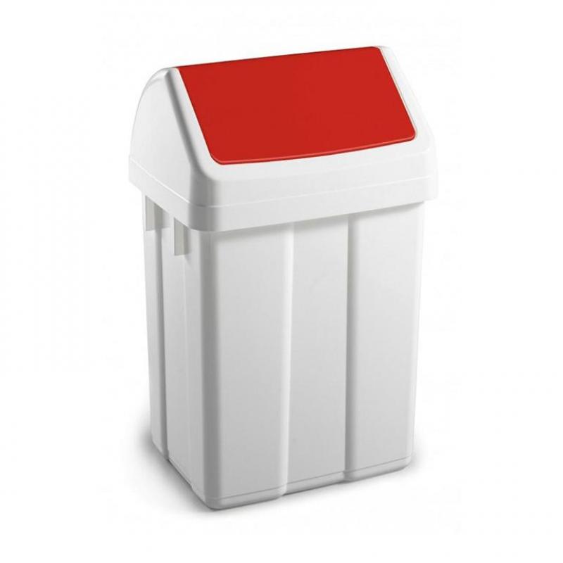 Papelera blanca de plástico con cabezal y tapa basculante de 50L.Contenedor diseñado para la recogida selectiva de basura. Fabricado en polietileno de alta densidad de categoría alimentaria. Capacidad 50 litros. Color rojo.